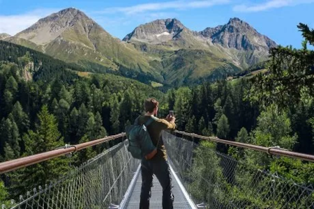 Spazieren Sie über die längste Hängebrücke Graubündens in Disentis. Erbaut im Jahr 2024, führt sie über den jungen Vorderrhein und bietet spektakuläre Ausblicke. (freier Eintritt)