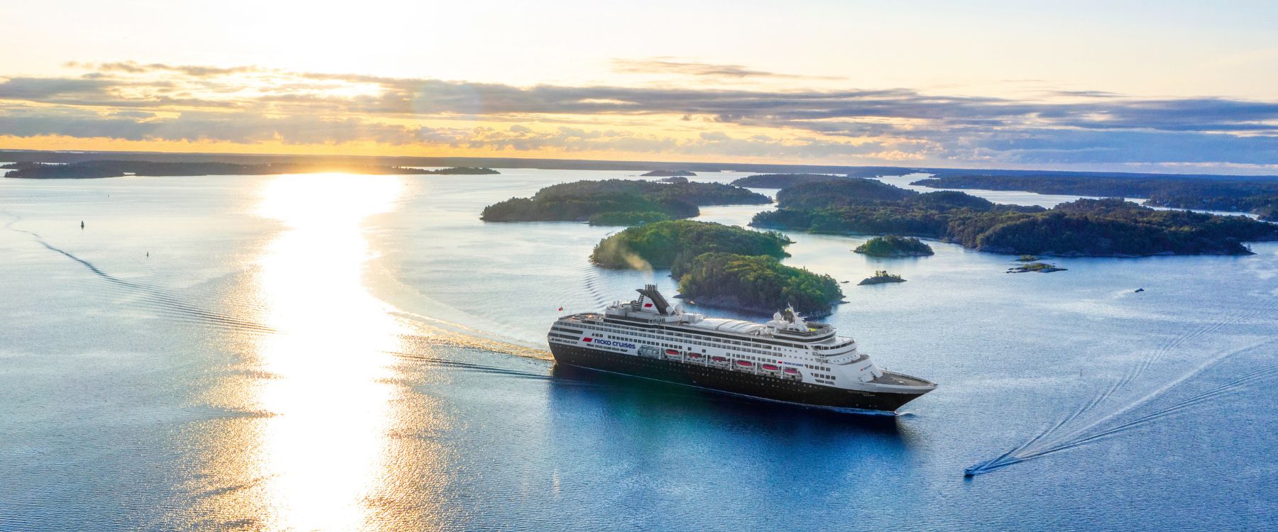 View from deck of cruise ship, sunset